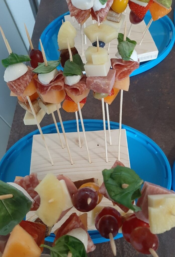 - Oliven – Schinken – Käse – Ananas Spiesse