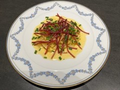 Küche Asiatisch (1) Fisch (4) Fleisch (7) Grill (4) Gut Bürgerlich (14) Indisch (1) Marokanisch (1) Schwierigkeit Anfänger (9) Mittelschwer (12) Fortgeschritten (0) Saison Herbst (0) Winter (2) Sommer (2) Frühling (3) Ganzjährig geeignet (6) (0) winter (2) summer (2) spring (3) available (0) Erdbeersaison (1) Rezept-Typ Dessert (5) Hauptgang (12) Nachspeise (1) Vorspeise (9) Zubereitungs-Methode Backen (7) Blanchieren (1) Braten (3) Dämpfen (1) Dünsten (1) Grillieren (5) Kochen in offener Pfanne (1) Ohne kochen (4) parieren (1) Pochieren (2) Rösten (1) Sieden (3) Zutaten 0.5 Salz (1) Agar-Agar (1) Apfel / Äpfel (1) Basilikum – Pesto (1) Basmati Reis (1) Baumnüsse (1) Birnen (1) Black Tiger Schwänze (1) Blattspinat (2) Blauschimmelkäse (1) Bouillon (1) Bratbutter (1) Brickteigblätter (1) Burger– Brötchen (1) Butter (7) Butterflocken (1) Bärlauch (1) Ca. g Rucola (1) Carnioli Reis (1) Champignon(s) (1) Cherry Tomaten (1) Cognac (1) Cranberry (1) Croutons (1) Currypaste (1) Currypulver (1) Dill (1) Ei (3) Eier (1) Eigelb (1) Eiweiss (1) Erdbeere(n) (1) Erdbeeren (2) Erdbeeren, gerüstet und geviertelt (1) Federkohl (1) Fein geschnittene Zitronenmelisse (1) FläschchenJack – Daniels BBQ – Sauce (1) Flüssiger Honig (1) Frisch geriebener Parmesan (1) Frische Basilikumblätter (1) Frischhefe (1) Frischkäse (1) Frühlingszwiebel(n) (1) Geflügelbrust (1) Gehackte Petersilie (1) Geklärte Butter (1) Gelbe (1) Gemüsebouillon (2) Geröstete Pinienkerne (1) Glattblättrige Petersilie (1) Grand Manier (1) Grüne Spargel (1) Halbrahm (1) Holunderblütensirup (1) Hühnerbouillon (2) Ingwer (1) Karotte(n) (1) Karotten (1) Kefen (1) Kiwi's (1) Knoblauchzehe(n) (2) Knoblauchzehen (3) Kokosmilch (2) Kokosraspeln (1) Kopfsalat (1) Kreuzkümel (1) Kräuter (1) Kräuteressig (1) Küchenfertig vorbereitet (1) Kümel (1) Kümmel (1) Lachs (1) Lammrückenfilets (1) Maizena (1) Mascarpone (3) Mayonnaise (1) Meersalz (2) Mehl (2) Microgreens (1) Milch (1) Minze (1) Minzeblättchen (1) Mürbeteig (1) Olivenöl (5) Orecchiette (1) Pancetta (1) Paprika (1) Paprika edelsüss (2) Parmaschinken (1) Parmesan, in dünne Blätter gehobelt (1) Passionsfruchtpüree-Essig (1) Pasta d'amara (1) Peperoni(s) (1) Petersilie (2) Pfeffer (11) Pfeffer aus der Mühle (2) Pistazienkerne (1) Pistazienöl (1) Poulet (1) Puderzucker (2) Pumpernickel (1) Rahm (2) Rahmquark (1) Reibkäse (1) Reis (1) Rhabarber (1) Rinderhackfleisch (2) Risottoreis (1) Rosa Pfefferbeeren (1) Rote Zwiebel, fein gehackt (1) Rotzungenfilet (1) Safran (2) Sahne (1) Salatblätter (1) Salatgurke(n) (1) Salbeiblätter (1) Salz (12) Salz, Pfeffer (1) Salz, Pfeffer, nach Bedarf (1) Salzstangen (1) Sbrinz (1) Schalotte (2) Schnittlauch (2) Schwarzer Pfeffer aus der Mühle (1) Sellerie (1) Senf (2) Spargel (1) Spargeln (1) Sultaninen (1) Süsskartoffel(n) (1) TL Honig (1) Tomaten (2) Trockenfleisch (1) Vanille (1) Vanille Glace (1) Vanilleschote (1) Vanillezucker (2) Vollrahm (2) Walnüsse (1) Wasser (4) Weisskohl (1) Weissmehl (1) Weisswein (3) Weissweinessig (1) Weizenmehl (1) Zitrone(n) (2) Zitronengras (1) Zitronenmelisse Blättchen zum Garnieren (1) Zitronensaft (5) Zucchini (1) Zucchini(s) (1) Zucker (7) Zwiebel (2) Zwiebel(n) (3) Öl (2) – Brötchen (1) – Schalen (1) Sortieren Sortieren Titel (A-Z) Titel (Z-A) Datum (Neueste) Datum (Älteste) Zurücksetzen Alle zurücksetzen 0 Als Favorit hinzufügen Überbackene Birnen-Blauschimmelkäse-Canapés 20 Min. Anfänger 0 Als Favorit hinzufügen Spargelcremesuppe 40 Min. Anfänger 0 Als Favorit hinzufügen Warmer Erdbeerkuchen 1 hrs 5 Min. Mittelschwer 0 Als Favorit hinzufügen Selleriesalat mit Trockenfleischstreifen 33 Min. Anfänger Seitennummerierung der Beiträge Vorherige 1 … 4 5 6 7 Nächste